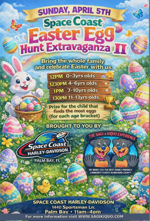 Join the Sagi & Kiquo Experience and Space Coast Harley-Davidson for an unforgettable Easter celebration with the whole family! Come ...