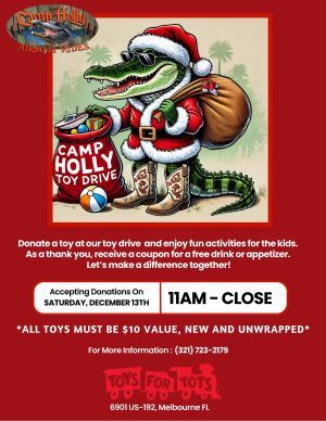 Join us at Camp Holly for a special holiday Toy Drive benefiting Toys for Tots! Bring a new, unwrapped toy ...