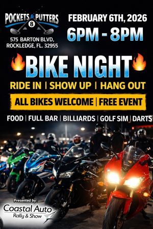 Bike Night at Pockets & Putters is presented by Coastal Auto Rally & Show. Drop by and hang out. Come ...