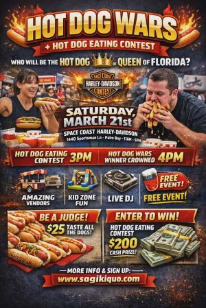 Sagi & Kiquo Experience has partnered with Space Coast Harley-Davidson to host Hot Dog Wars! We’re bringing TOP Hot Dog ...
